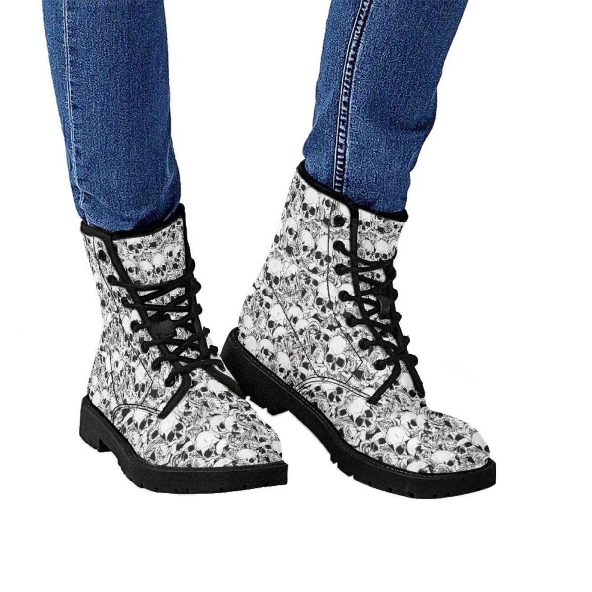Printed Women's Leather Flat Bottom Low Heel British Martin Boots