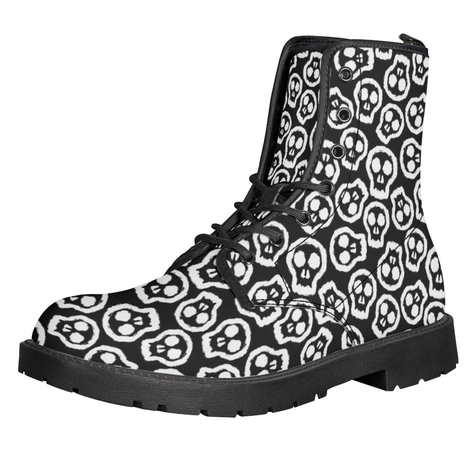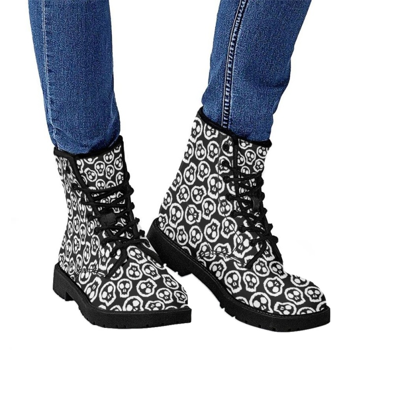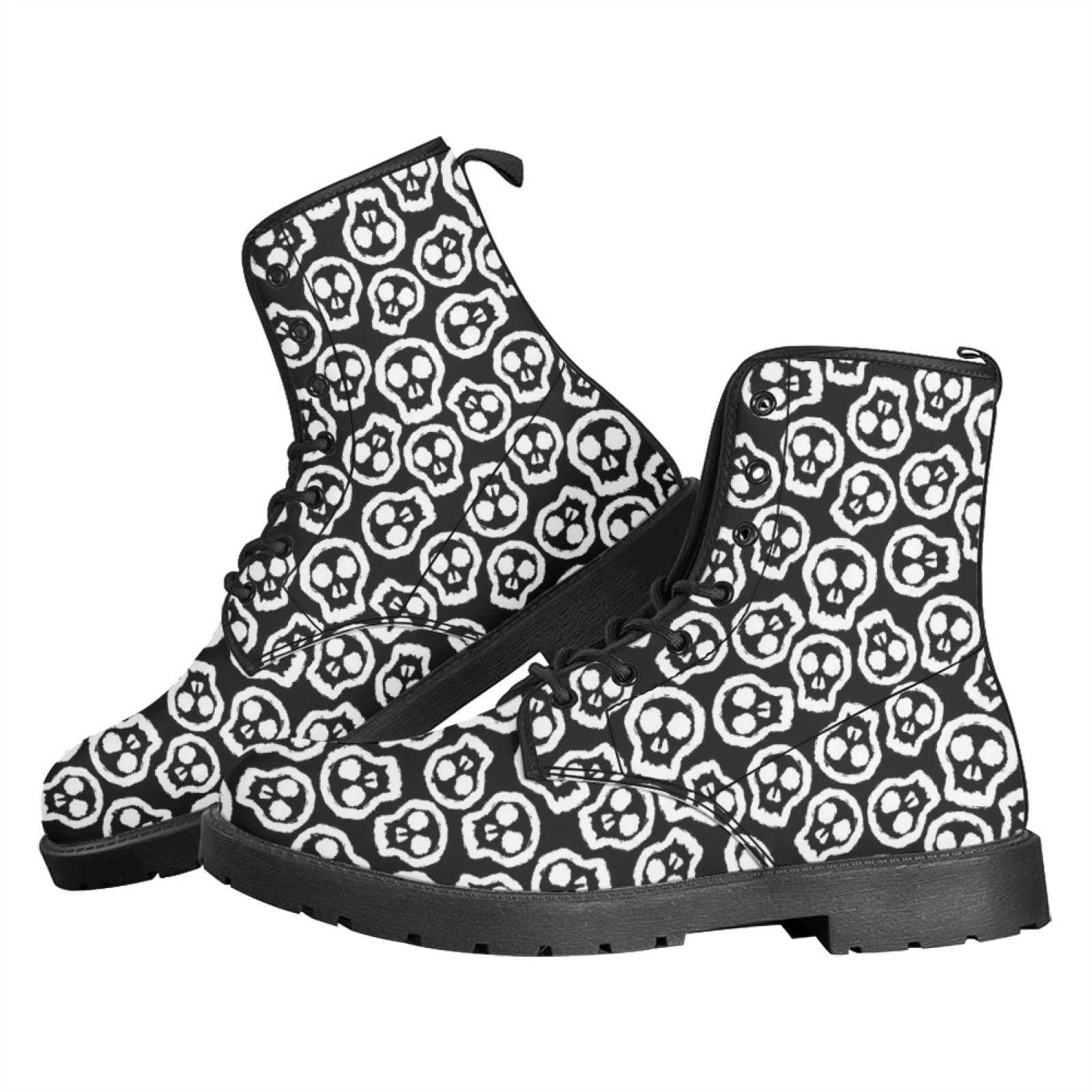 Printed Women's Leather Flat Bottom Low Heel British Martin Boots