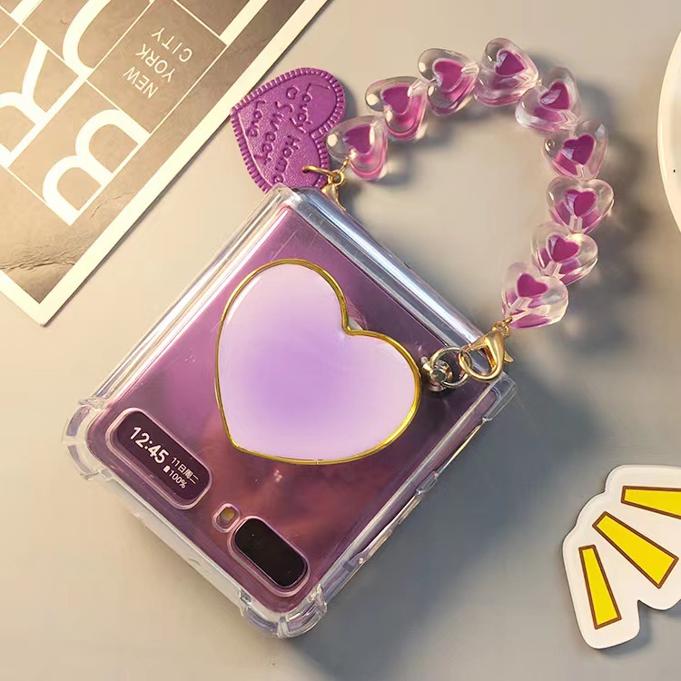 Color: Z Flip3 transparent fall proof heart bracelet, Z Flip4 transparent fall proof heart bracelet