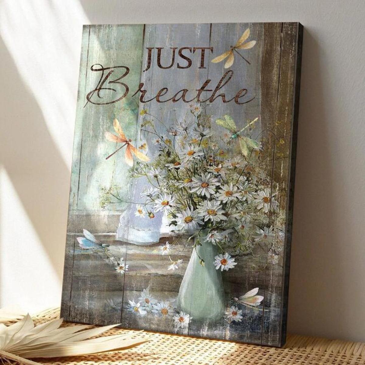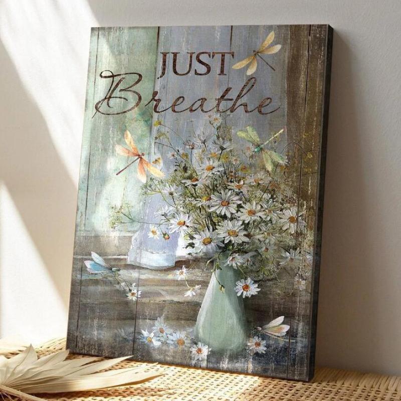Breathing Canvas Wall Art Vintage Chrysanthemum Vase With Dragonfly Painting Frame