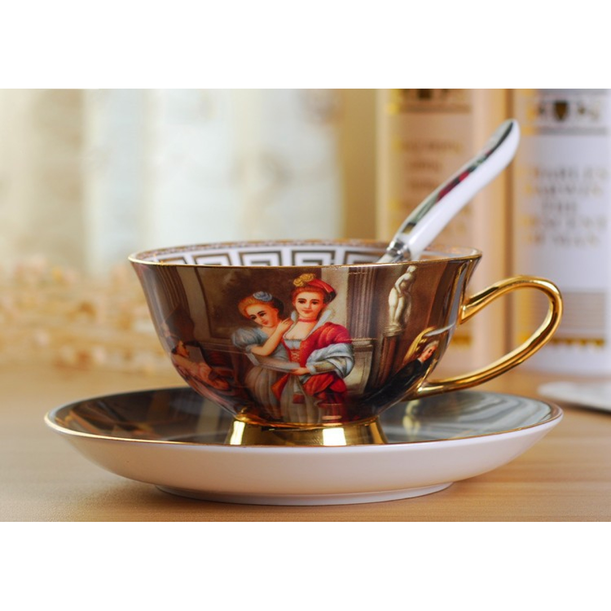 Creative Bone China Coffee Cup And Plate, Retro And Luxury