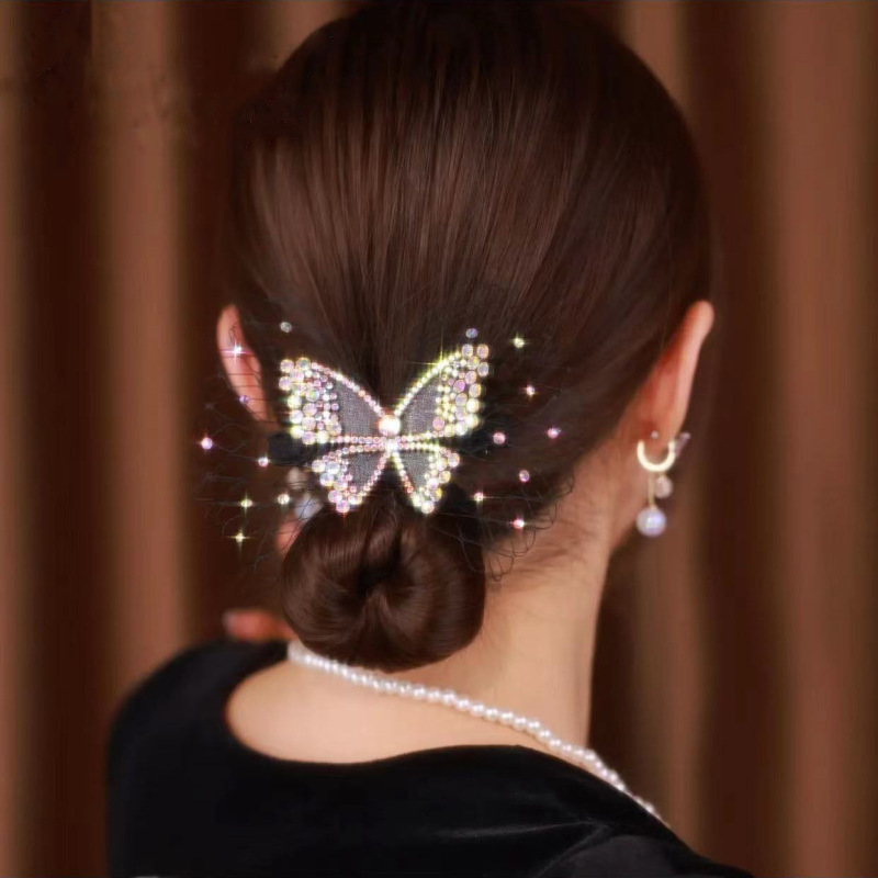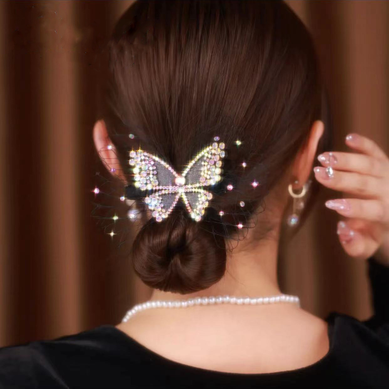 Mesh Micro Inlaid Color Diamond Butterfly Hairpin