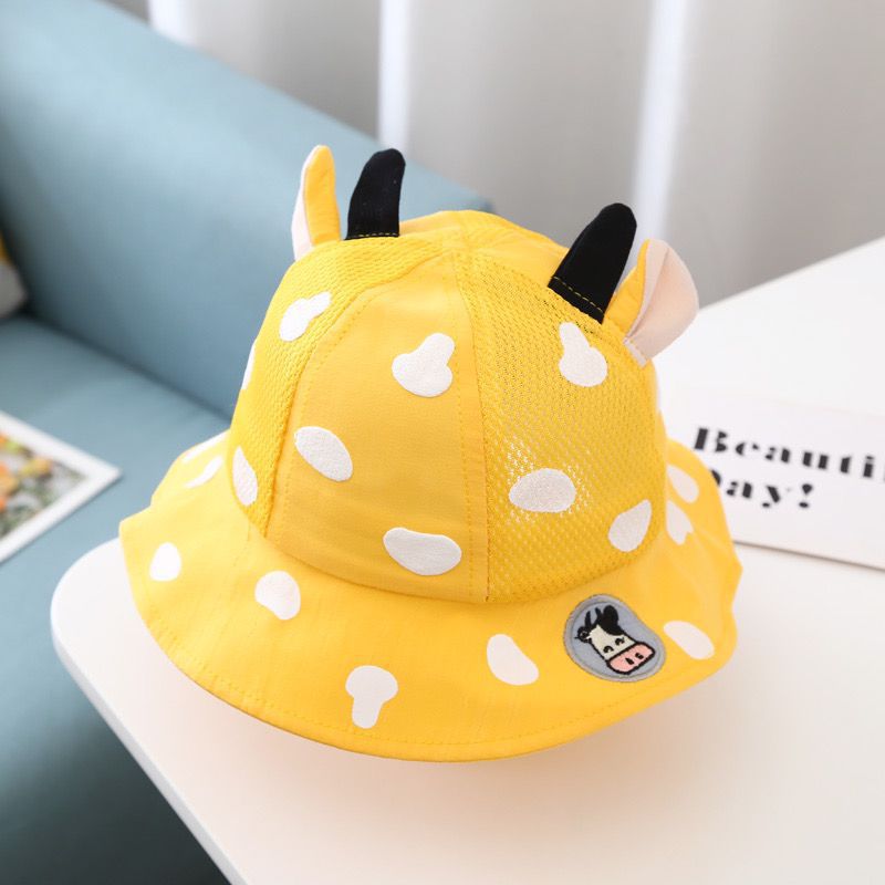 Style 2 yellow - cow white dots cloth cap plus visor,