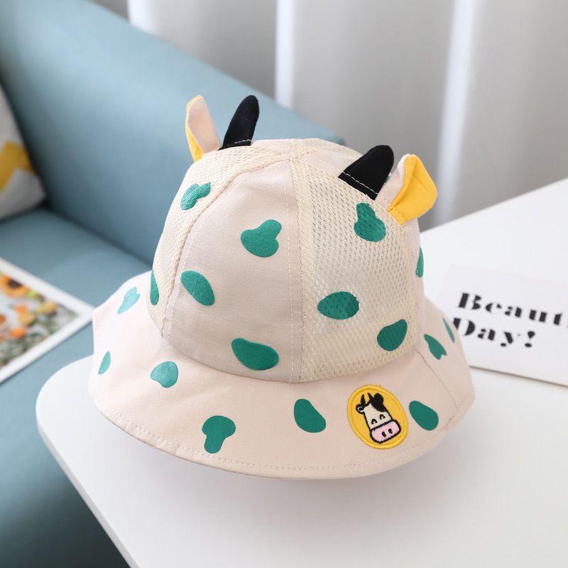 Style 13 beige and white - cow black dot mesh hat with mask,