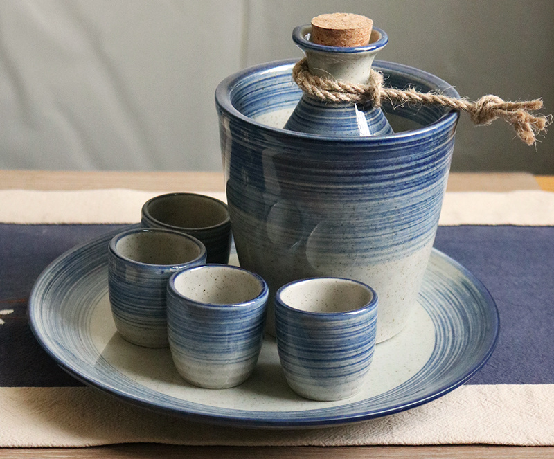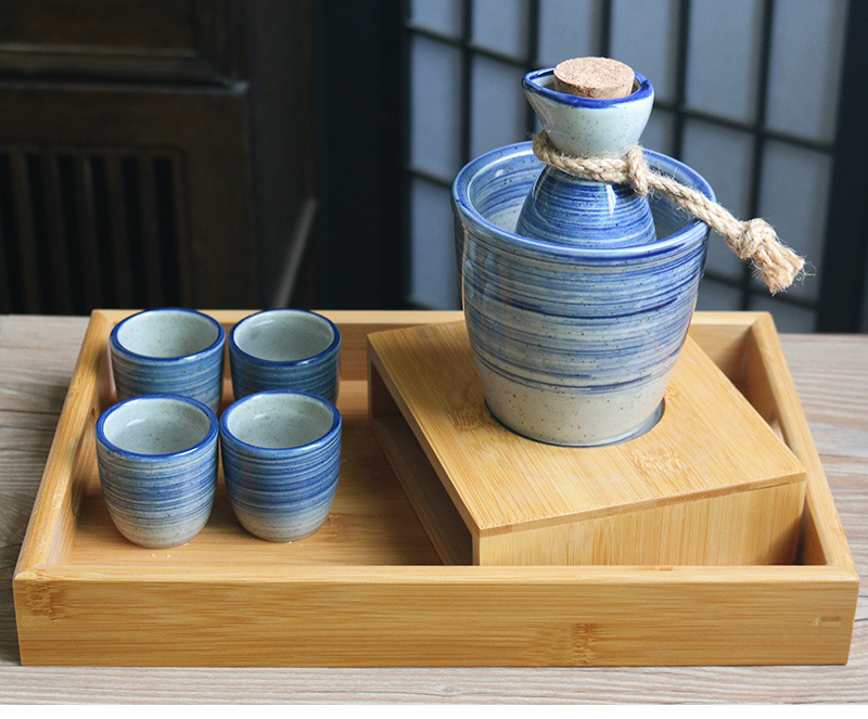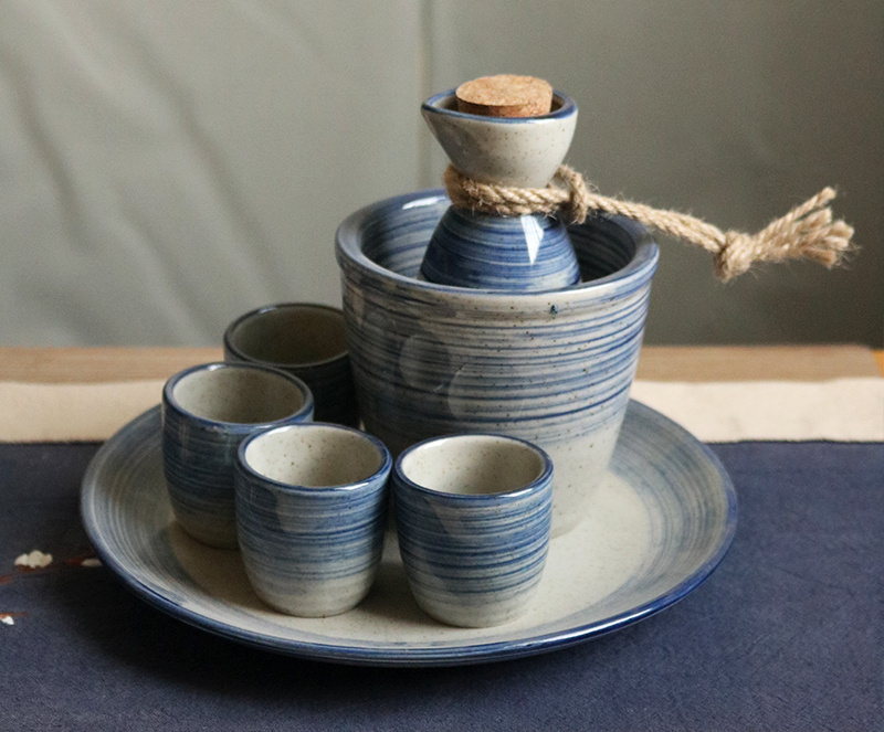 Set10: Large 1 pot 4 cups 1 cylinder + wooden tray for wine winemaker