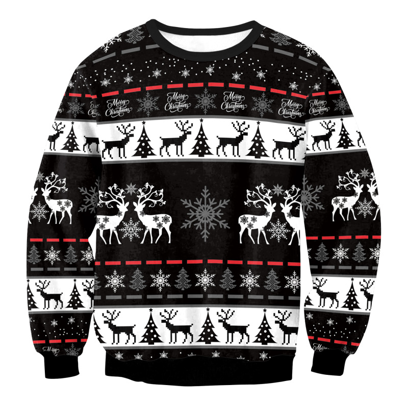 Mixed Color Elk Christmas Digital Printing Sweater Long Sleeve Coat