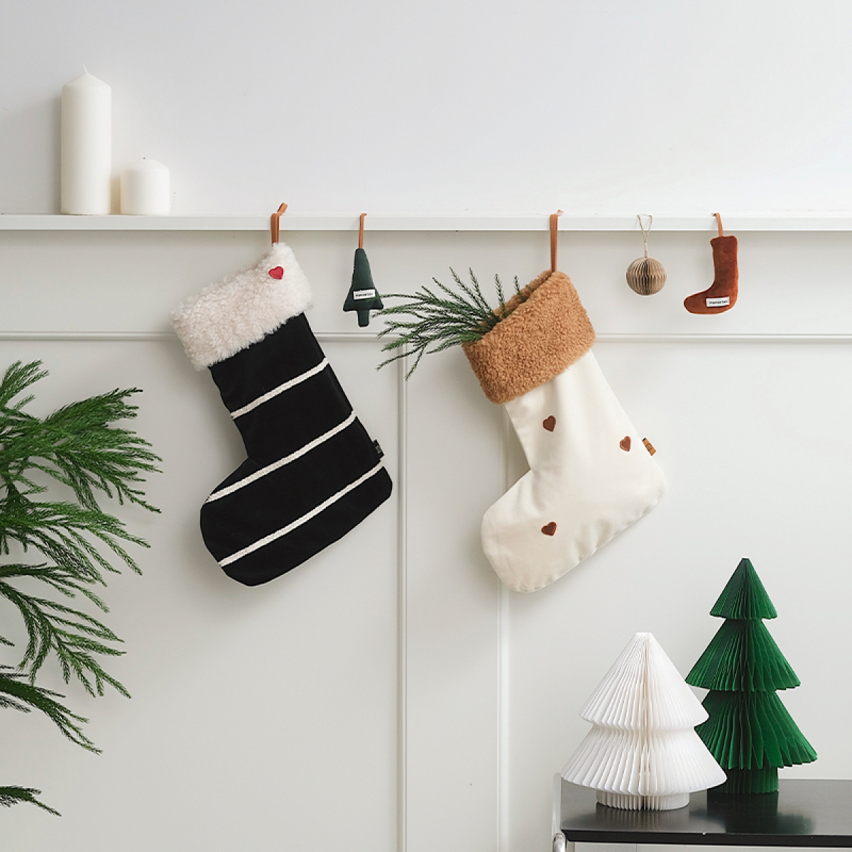Color: black and white striped Christmas socks warm brown love Christmas socks in pairs