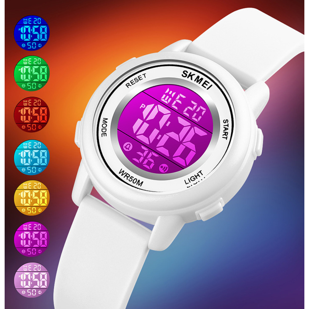 Color: white, purple, black, orange, pink blue, pink, pink, rose Red
