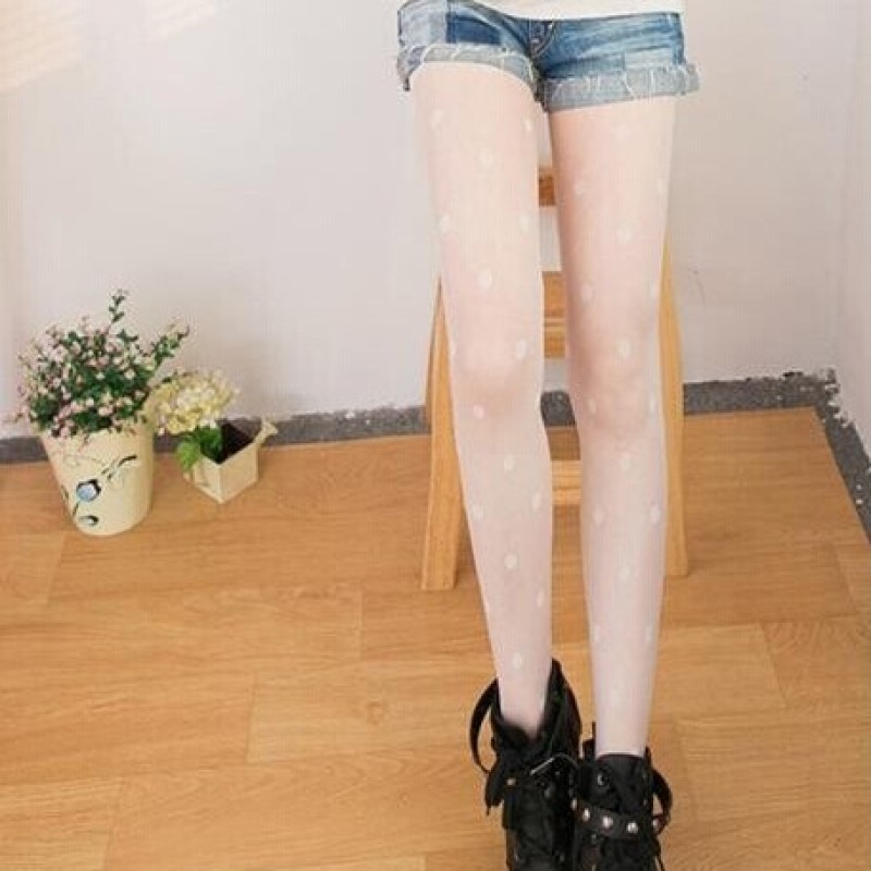 Super Model Playful Big Polka Dots White Black Jacquard Garden Dot Stockings Pantyhose