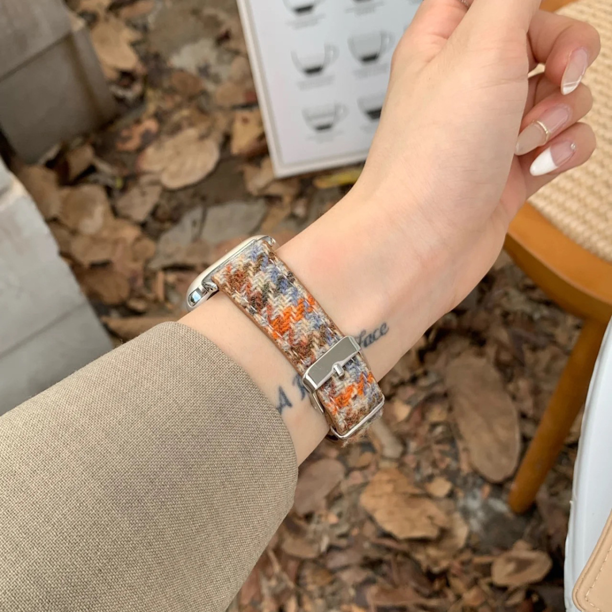Color: orange houndstooth gold buckle, brown houndstooth gold buckle, green-brown houndstooth gold buckle, orange houndstooth silver buckle, brown houndstooth silver buckle, green-brown houndstooth silver buckle.