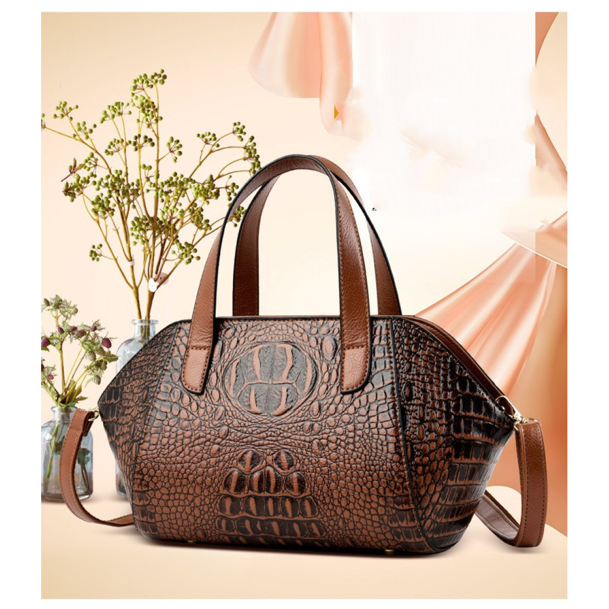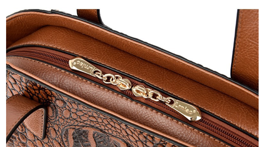 Popular elements: sewing thread, crocodile pattern, embossing.