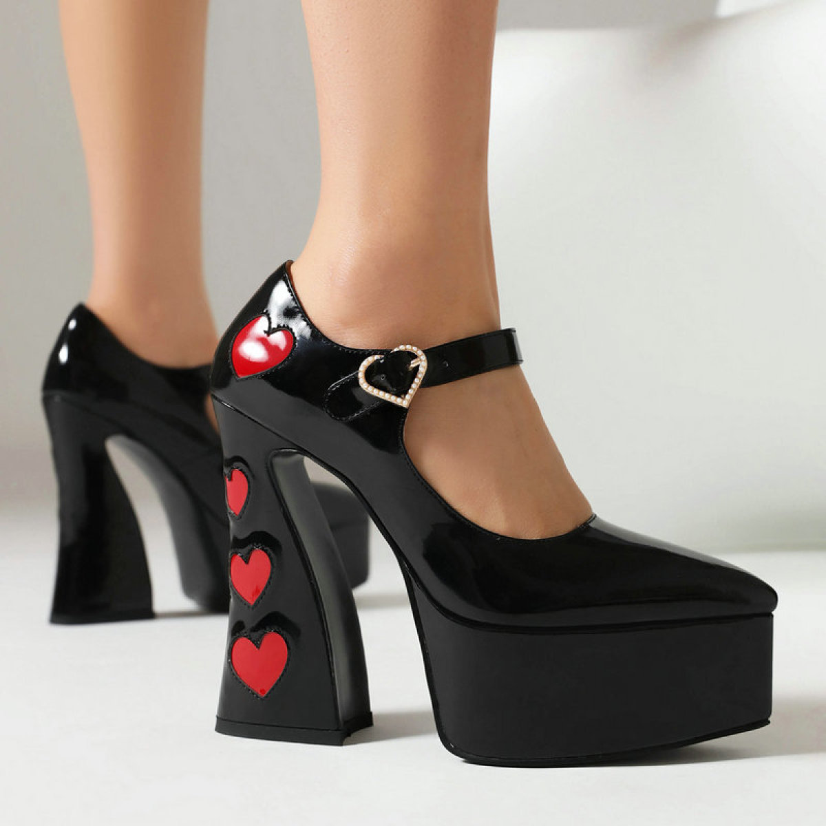 Patent Leather Pointed Thick Sole Waterproof Platform Super-high Heel Shoes