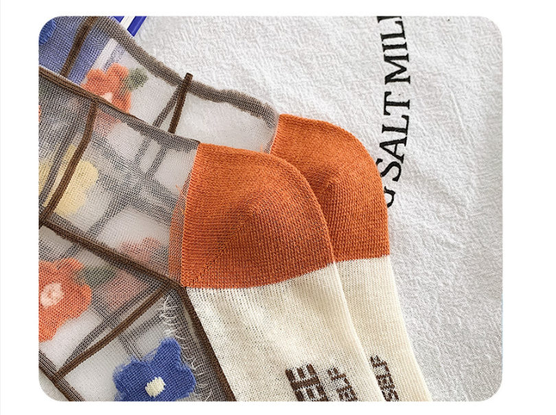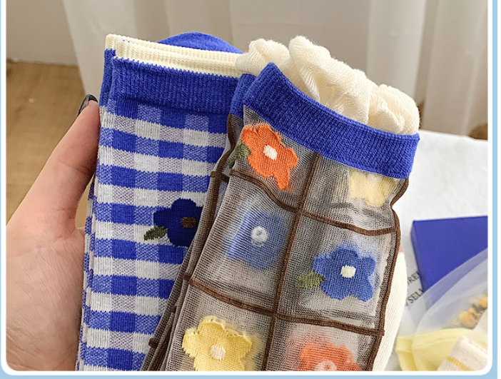 Color: a pair of blue orange and yellow flowers, a pair of blue plaid flowers, and a pair of vertical broken flowers.