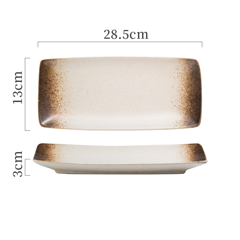 9Style: 11-inch rectangular four-corner plate Tianmu glaze