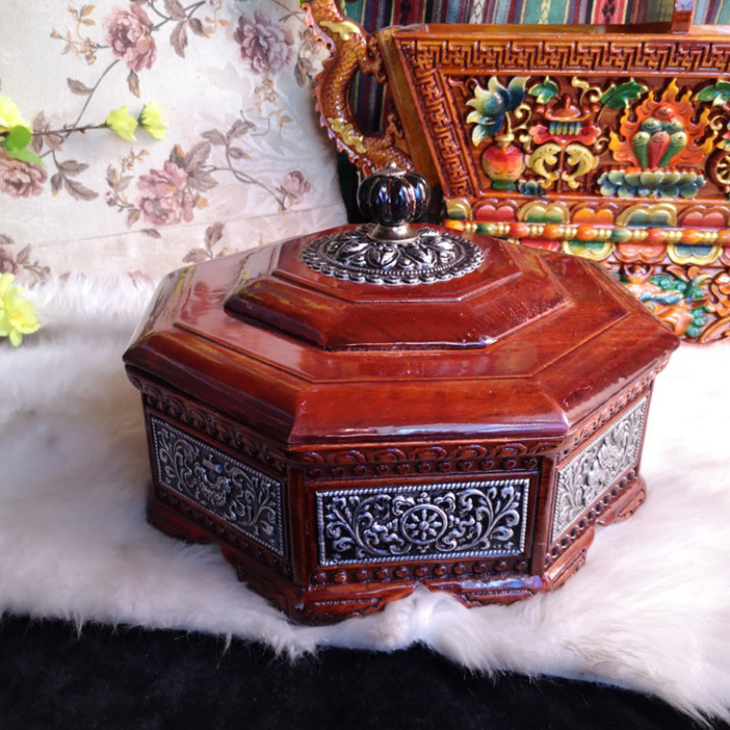 Dish Wooden Fruit Tray Basket Prismatic Auspicious Eight Treasures Candy Box