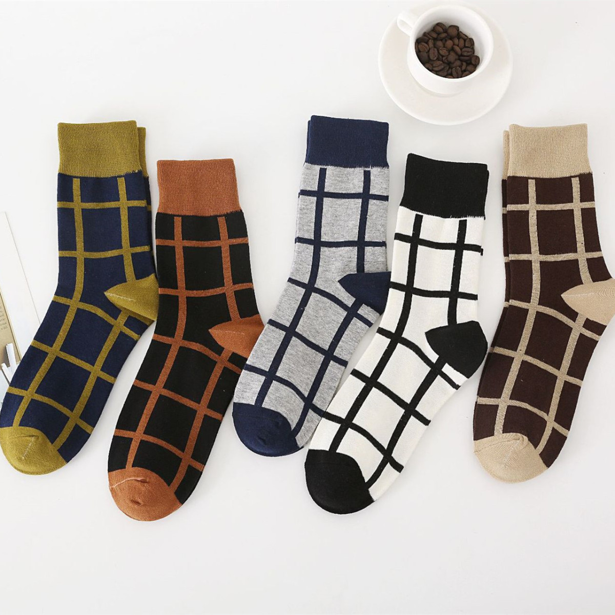 Color: white, black, dark blue, brown, gray