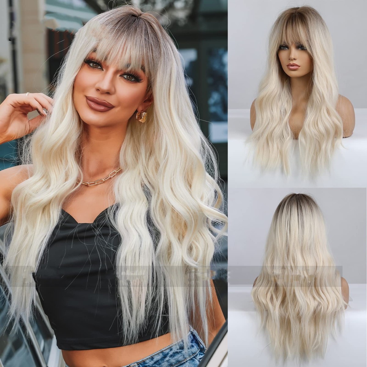 Color categories: Flat bangs gradient blonde, flat bangs gradient brown, white Blonde gradient, black brown gradient