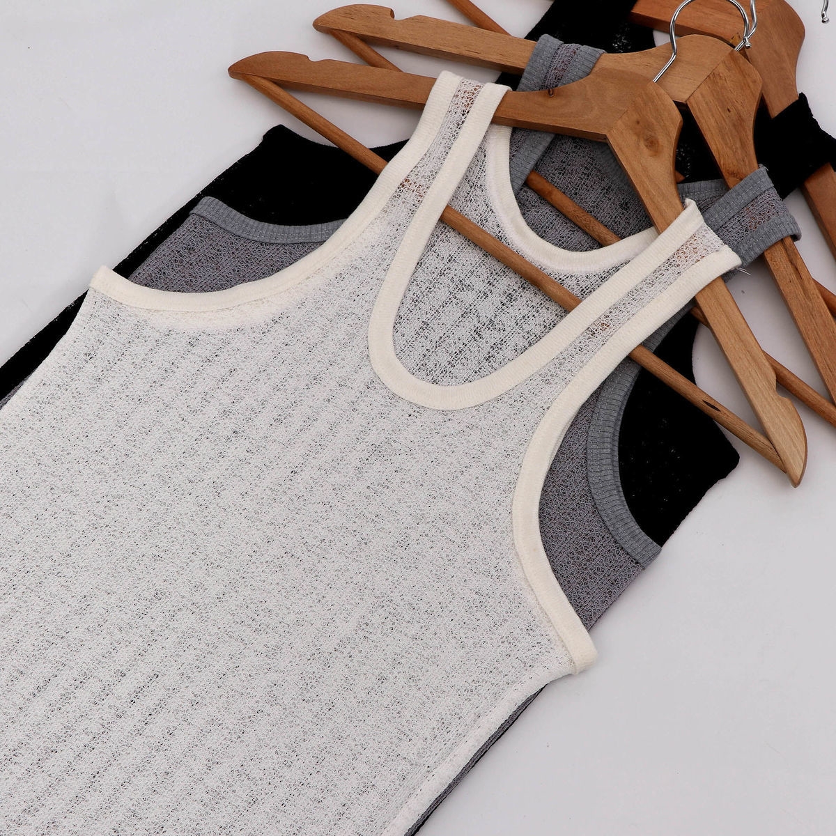 Summer Men's Sleeveless Round Neck Hollow Undershirt