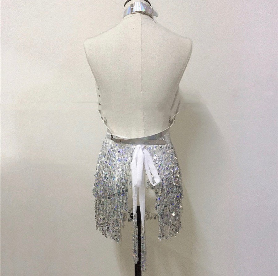 Color: silver body chain+skirt suit pink body chain+skirt suit