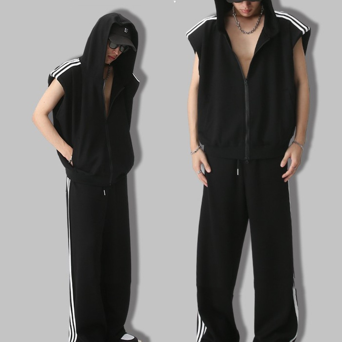 Color: gray coat, black coat, gray pants, black pants