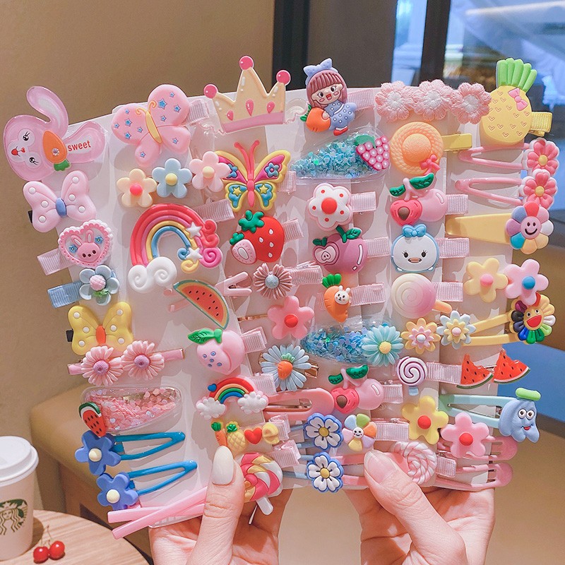 Style 15 pink hairpin + blue hair rope 18 pieces