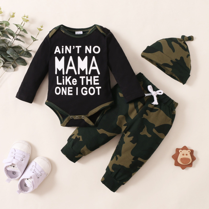 Spring And Autumn Boys' MAMA Letter Printing Long-sleeve Jumpsuit Three-piece Set
