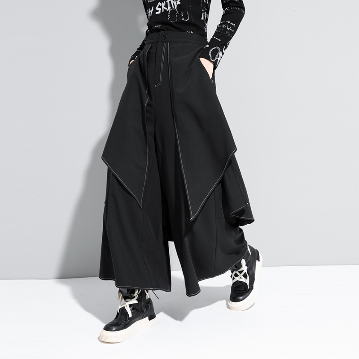 Color: 200836 White Thread fake two-piece wide leg pants