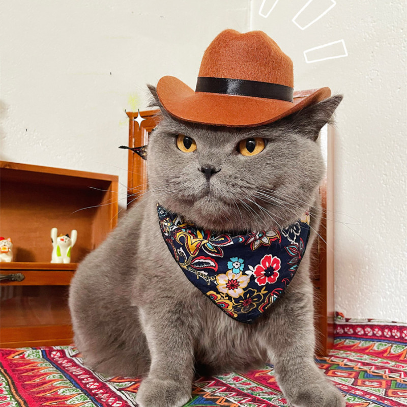 Color classification: Brown cowboy hat, cowboy hat star strap, navy blue retro triangle scarf, date red retro triangle scarf, cowboy hat + red triangle scarf, cowboy hat + navy blue triangle scarf, star cowboy hat + red triangle scarf, star cowboy hat + navy blue triangle scarf
