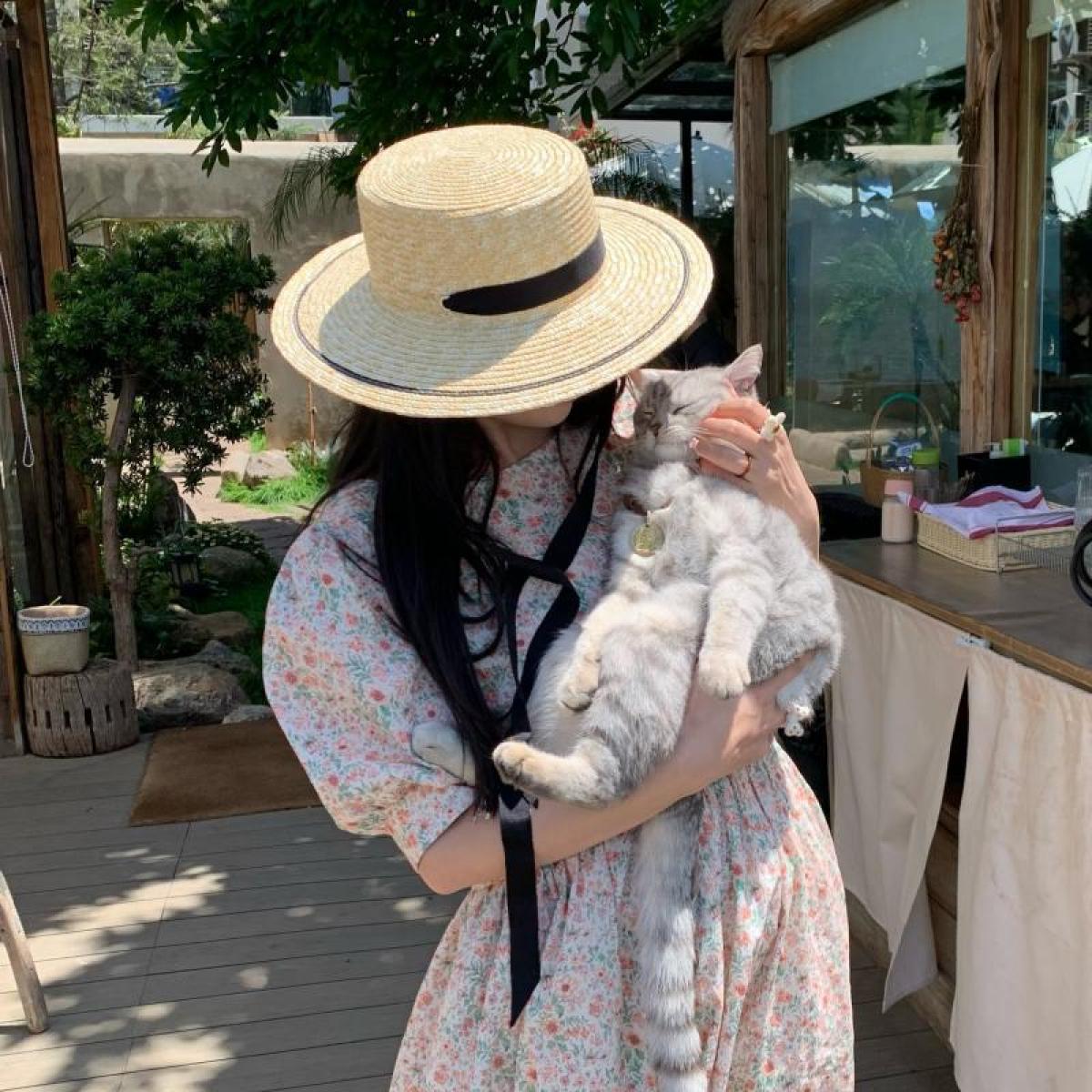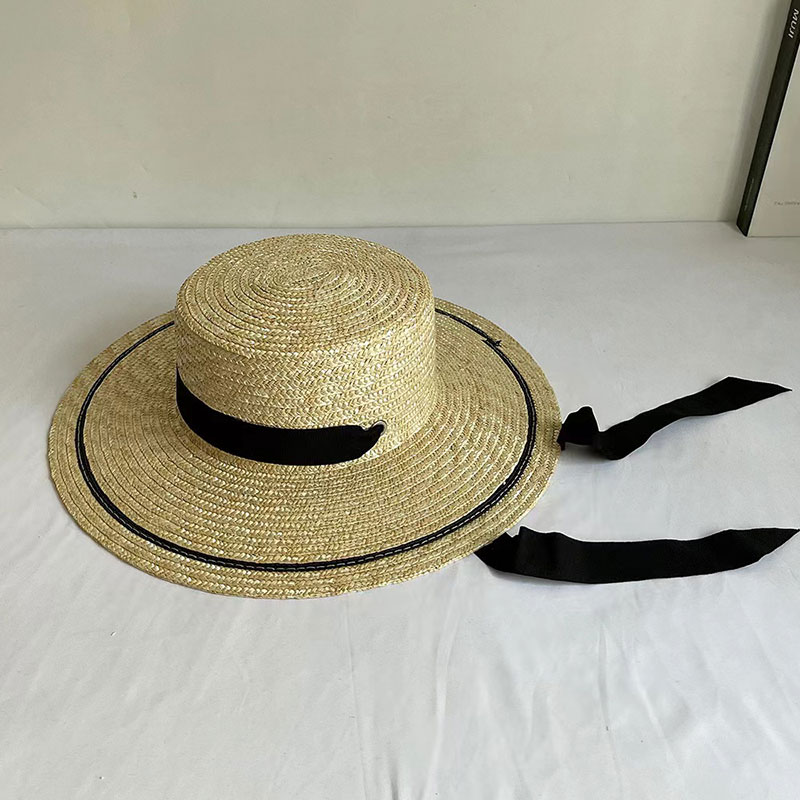 Color: Straw hat with black border and large brim * Long black webbing
