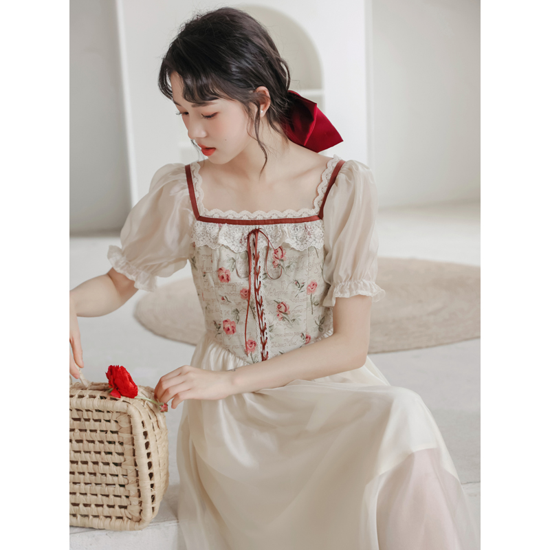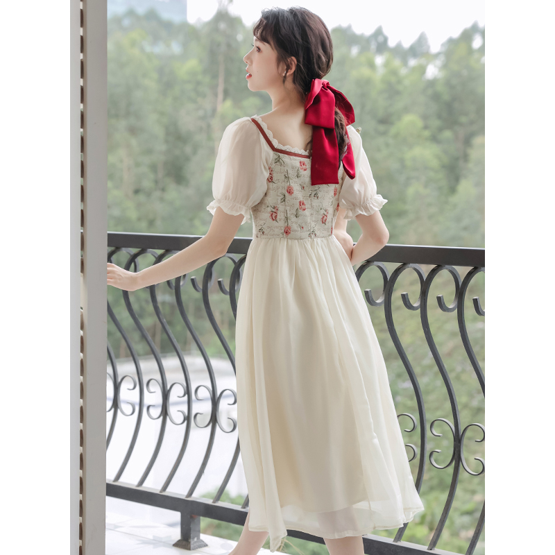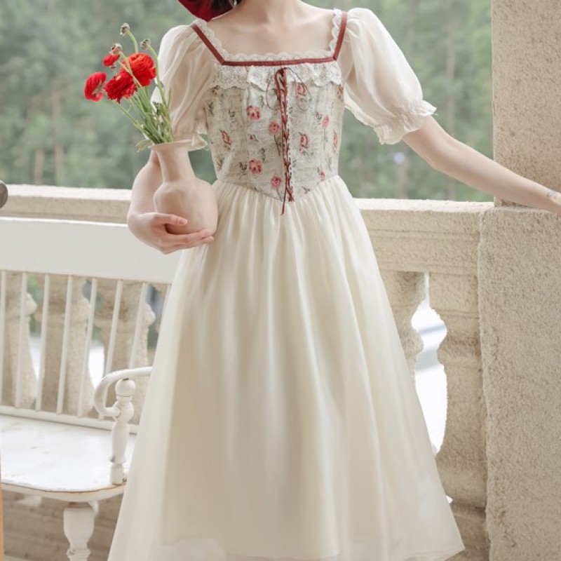 Gentle Milk Sweet Style Fragmented Flower Dress