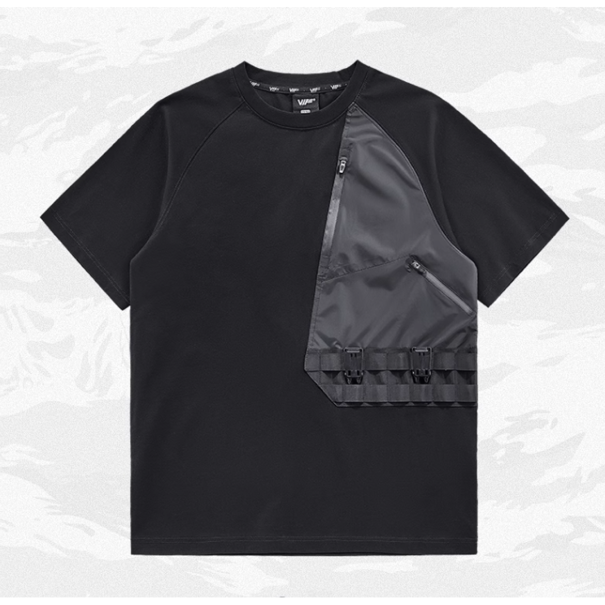 Features: Round neck, pockets, patchwork, multiple pockets, 3D cutting
