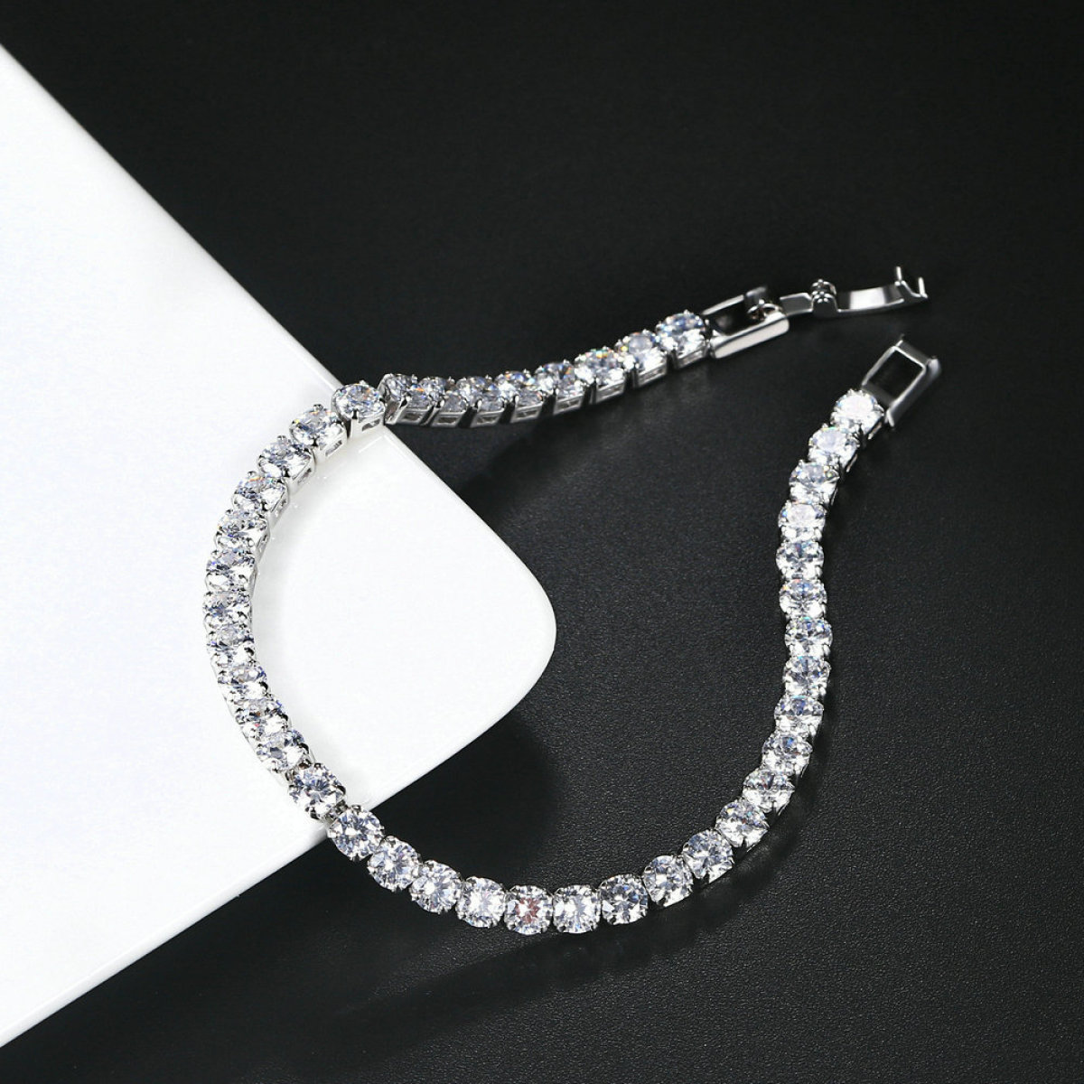 Color: platinum white stone 4mm-17cm, platinum white stone 4mm-18cm, platinum white stone 4mm-19cm, rose gold white stone 4mm-17cm, rose gold white stone 4mm-18cm, rose gold white stone 4mm-19cm, gold white stone 4mm-17cm, gold white stone 4mm-18cm, gold white stone 4mm-19cm