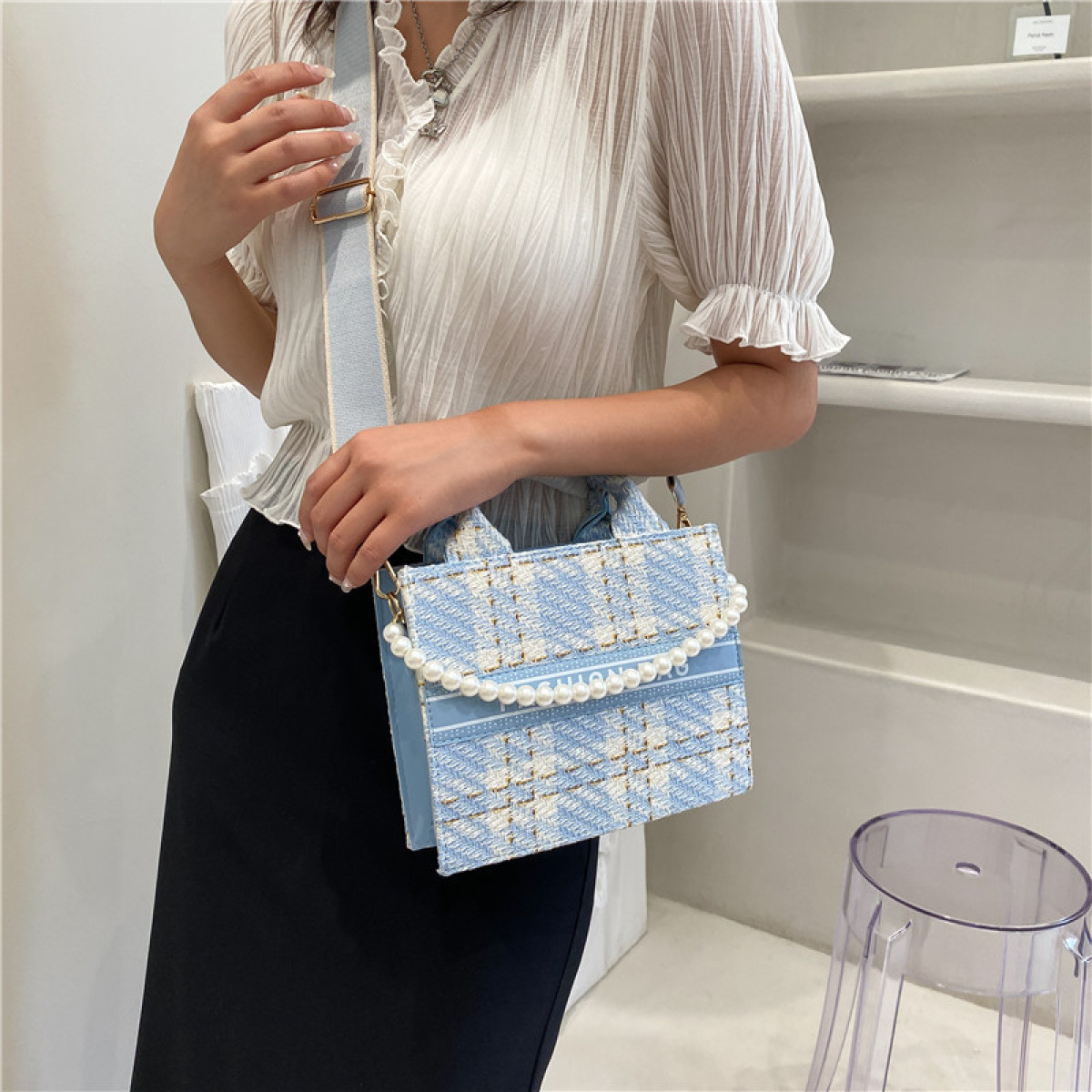 Plaid Beaded Printed Fashion Crossbody Square Bag