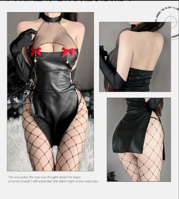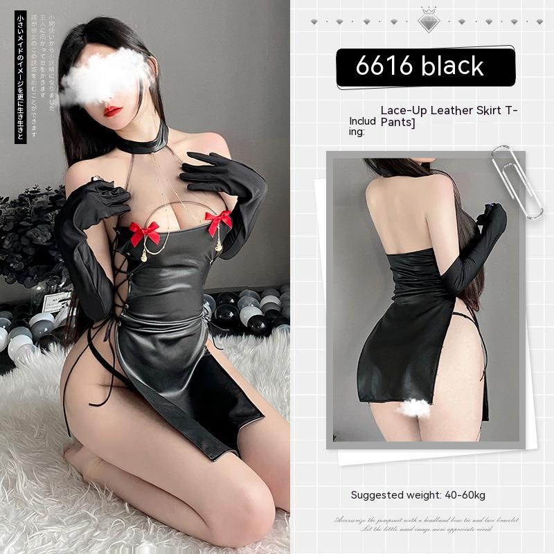 Color: Black [lace-up leather skirt T-shaped panties], Black [lace-up leather skirt T-shaped panties] black jumpsuit mesh stockings