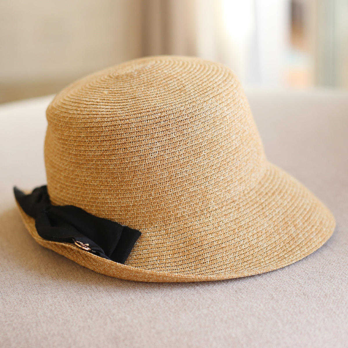 Color: beige back folding bow straw bucket hat, black back folding bow straw bucket hat, navy blue back folding bow straw bucket hat