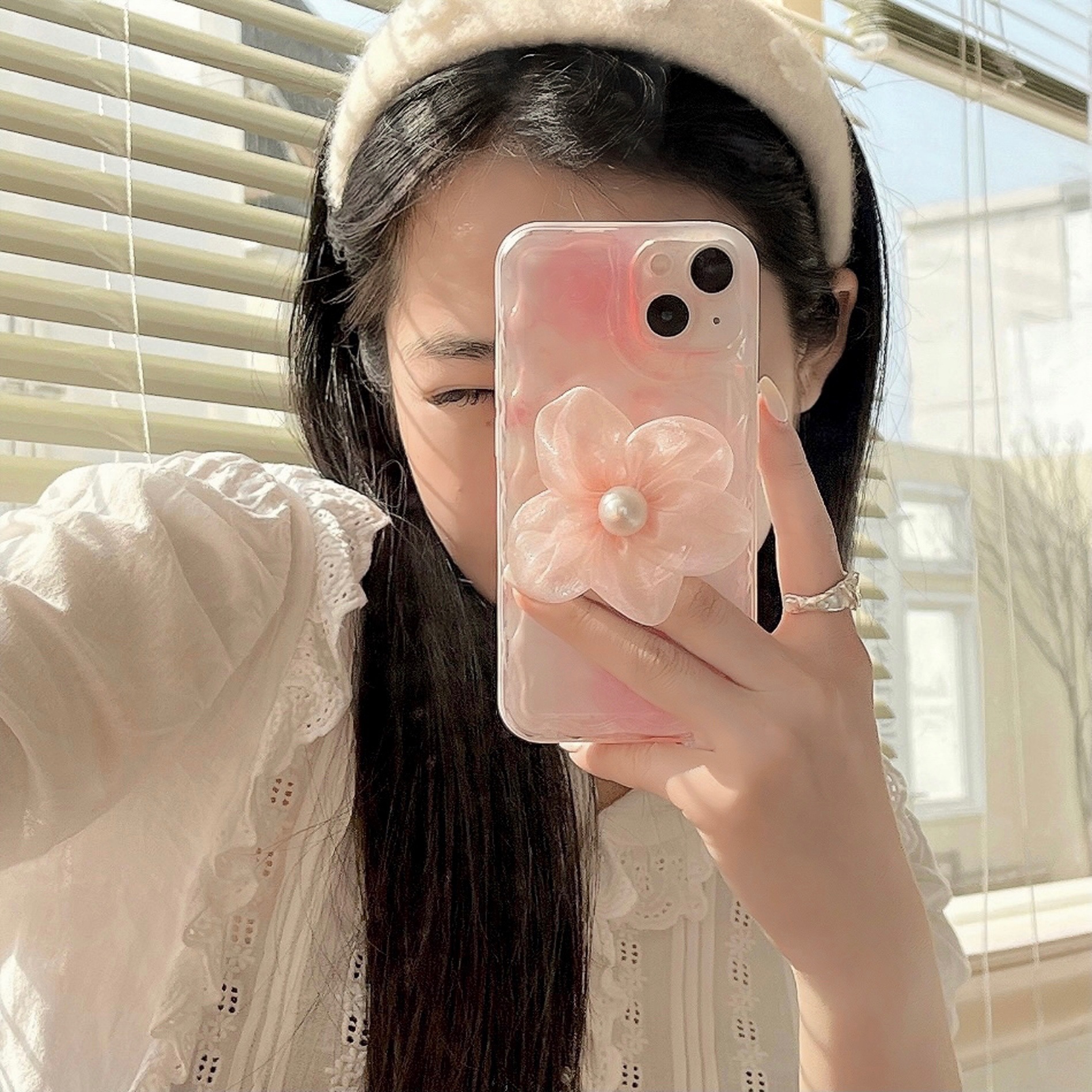 Color: cream edge transparent powder phone case (single shell), cream edge transparent powder phone case bracket