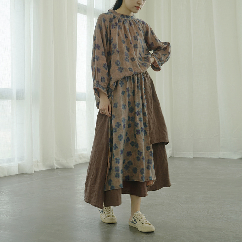Retro Nostalgic Blue Dyed Printed Irregular Long Dress