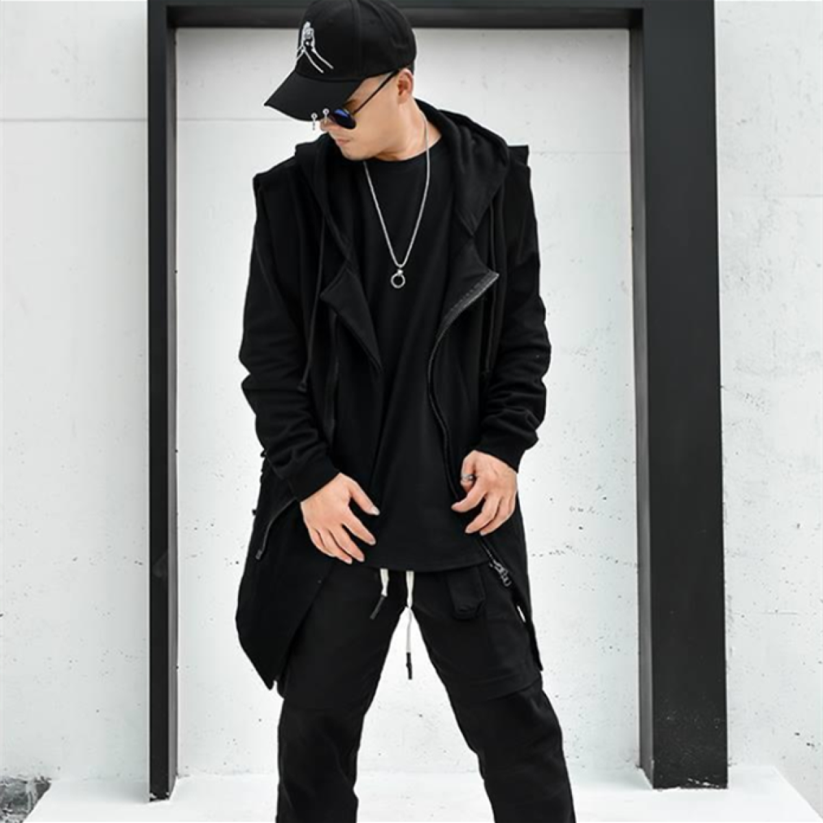 Dark Mid Length Windbreaker Men's Loose Hip Hop Cloak Sweater Hooded Coat