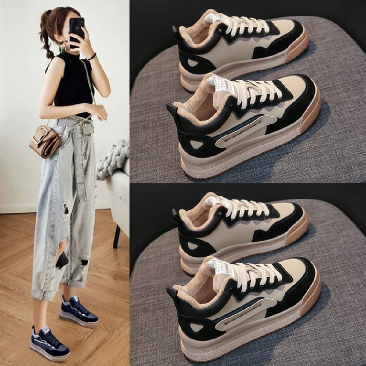 Flat-heeled Lace Up Low-top Shoes Deep Mouth Flat PU Board Shoes