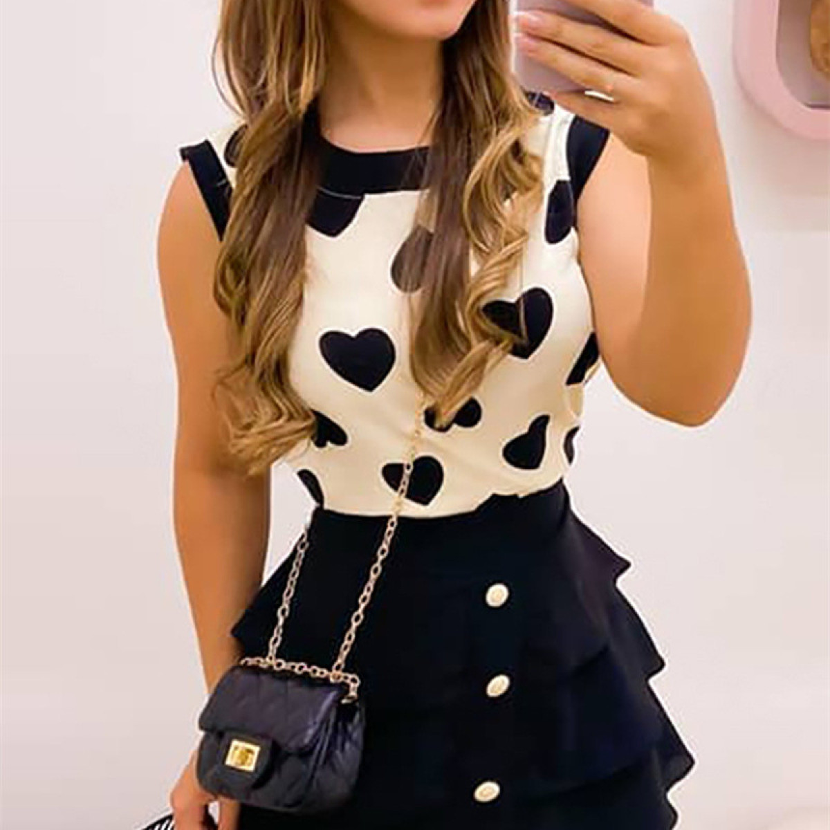 Beige Heart-shaped Skirt Not Positioned Printed Skirt