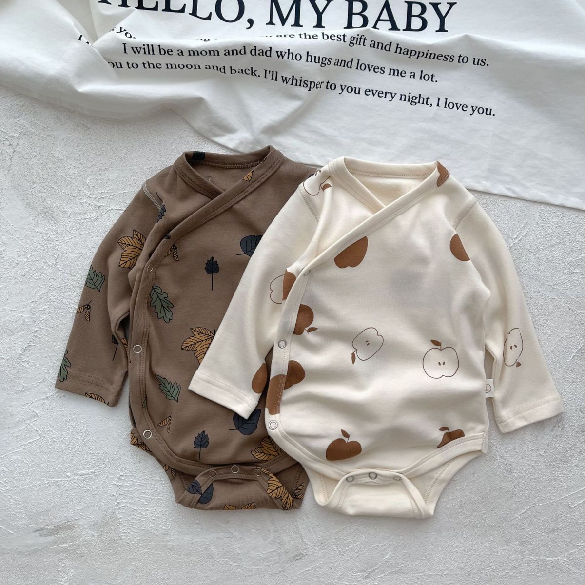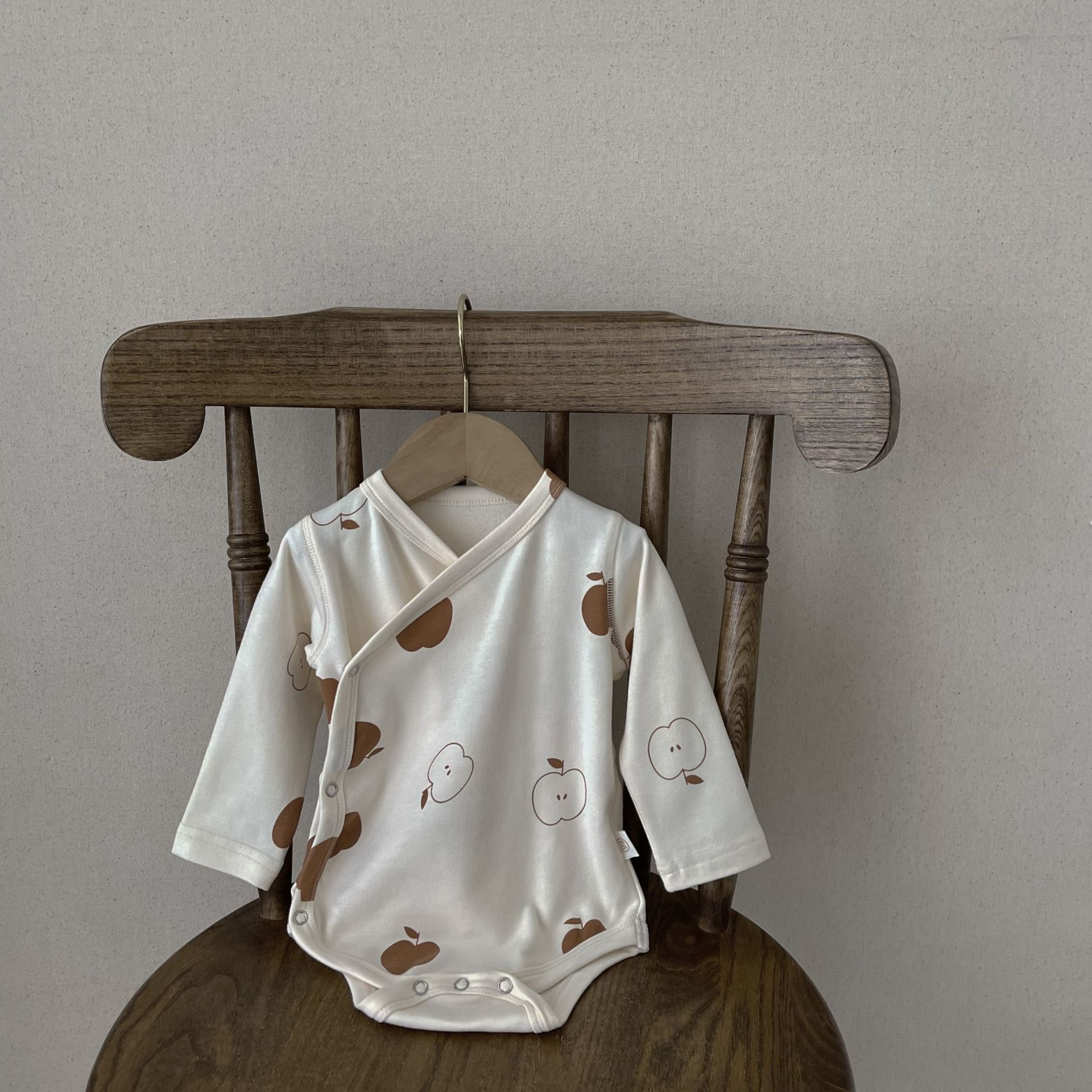 Color: coffee printing leaf placket long sleeve jumpsuit, Red Apple apricot placket long sleeve jumpsuit