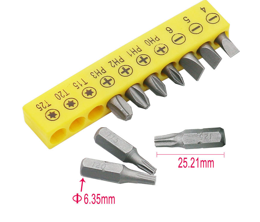 Specifications: L-type double-headed socket wrench, 10 drill bits, 10 drill bit socket wrenches