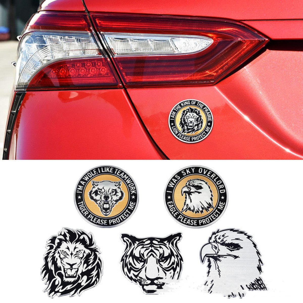Color: aluminum sticker-round lion, aluminum sticker-round eagle, aluminum sticker-round wolf head, aluminum sticker-lion, aluminum sticker-Eagle, aluminum sticker-Tiger