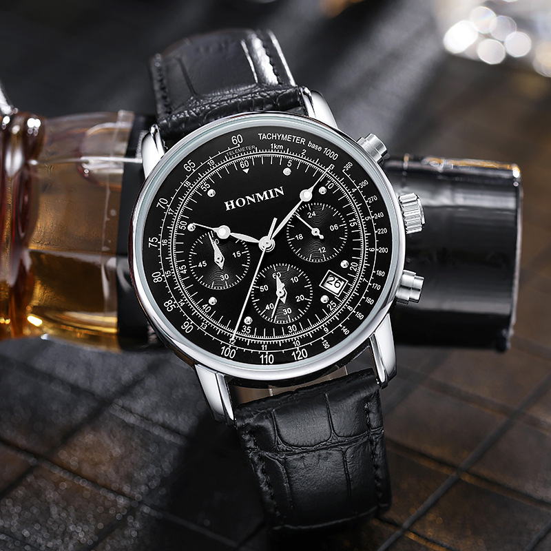Sports Fashion Six-pin Multi-function Belt Quartz Men's Watch