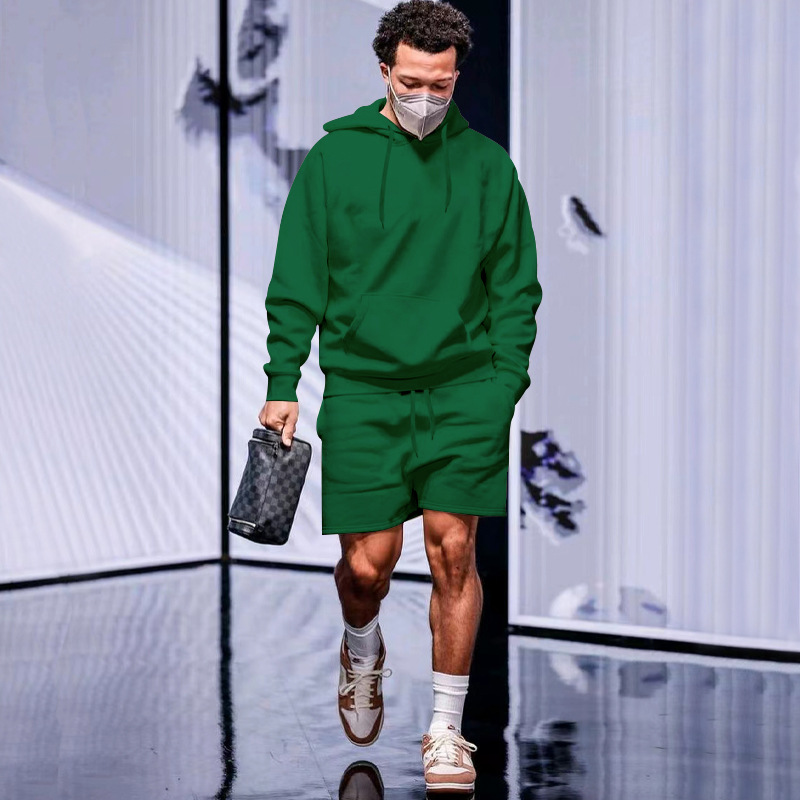 Men's Clothing Velvet Sport Fleece And Shorts Two-piece Set In Stock