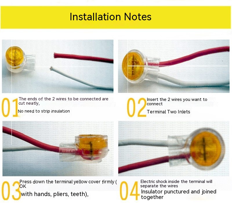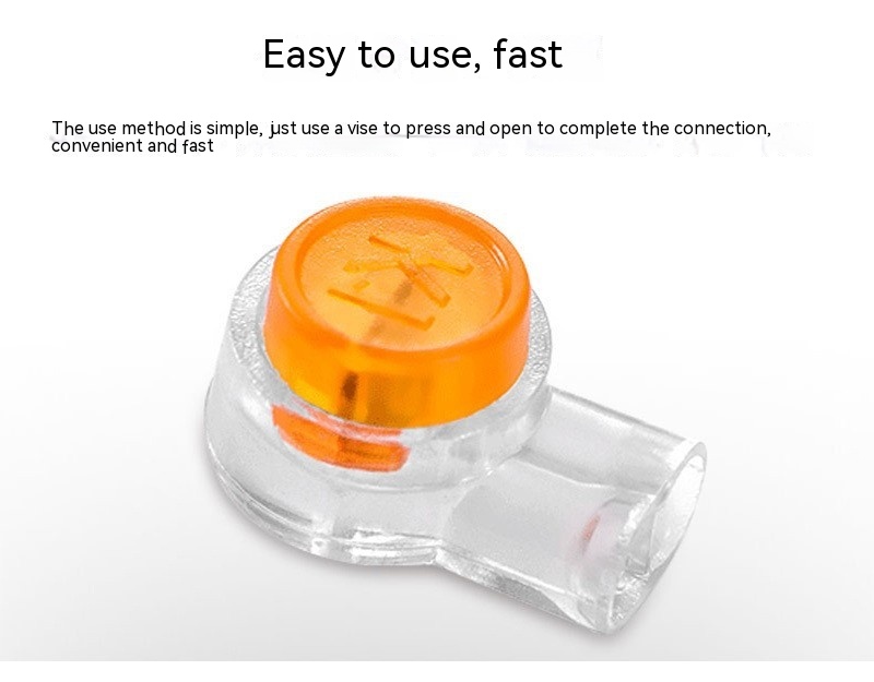 K1 connector is a single moisture-proof type, which is connected by a single knife and used for direct connection of the second line. Applicable wire diameter is 0.4-0.9mm, insulation outer diameter is 2.0mm. Connector is suitable for fast connection of medium and small power lines. It solves the problem of complicated operation of screw crimp-type terminal wiring. When wiring, the wire does not need to remove the insulation layer, directly insert the thread head into the wiring hole of connector, and the connection can be completed by pressing or spinning.