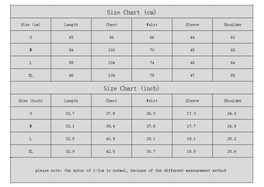 1. Asian sizes are 1 to 2 sizes smaller than European and American people. Choose the larger size if your size between two sizes. Please allow 2-3cm differences due to manual measurement.