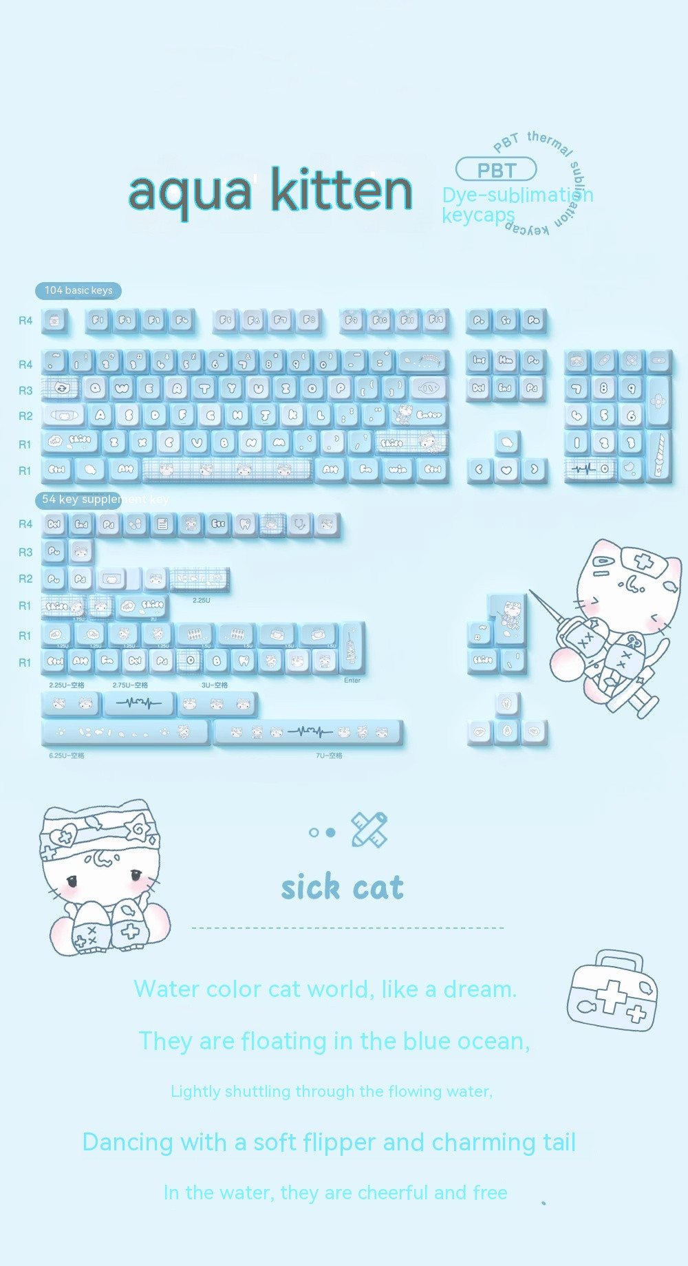 Color classification: 138 keys Aqua Cat 158 keys Aqua Cat