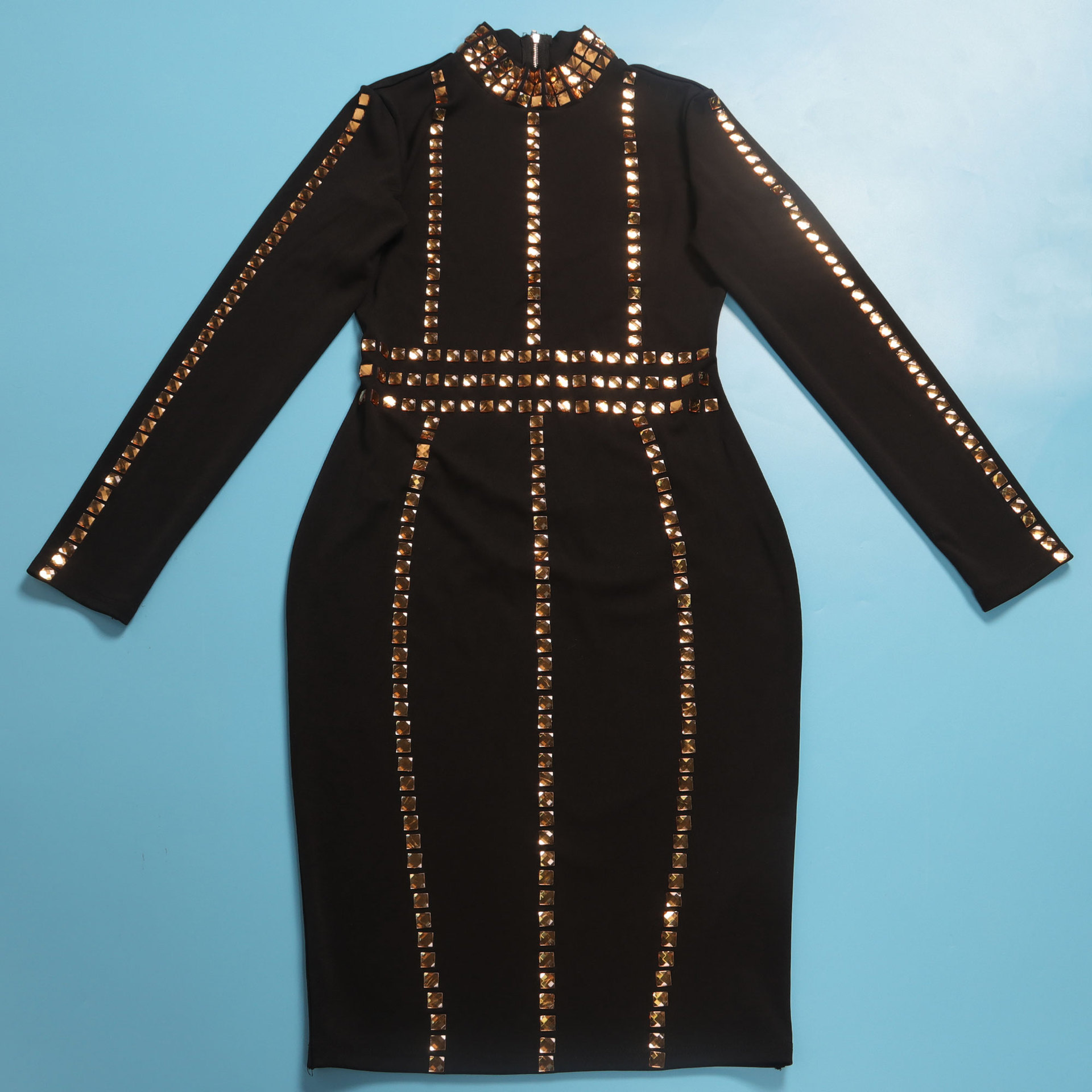 Popular elements: slim rhinestone stretch skinny sheath long sleeve dress