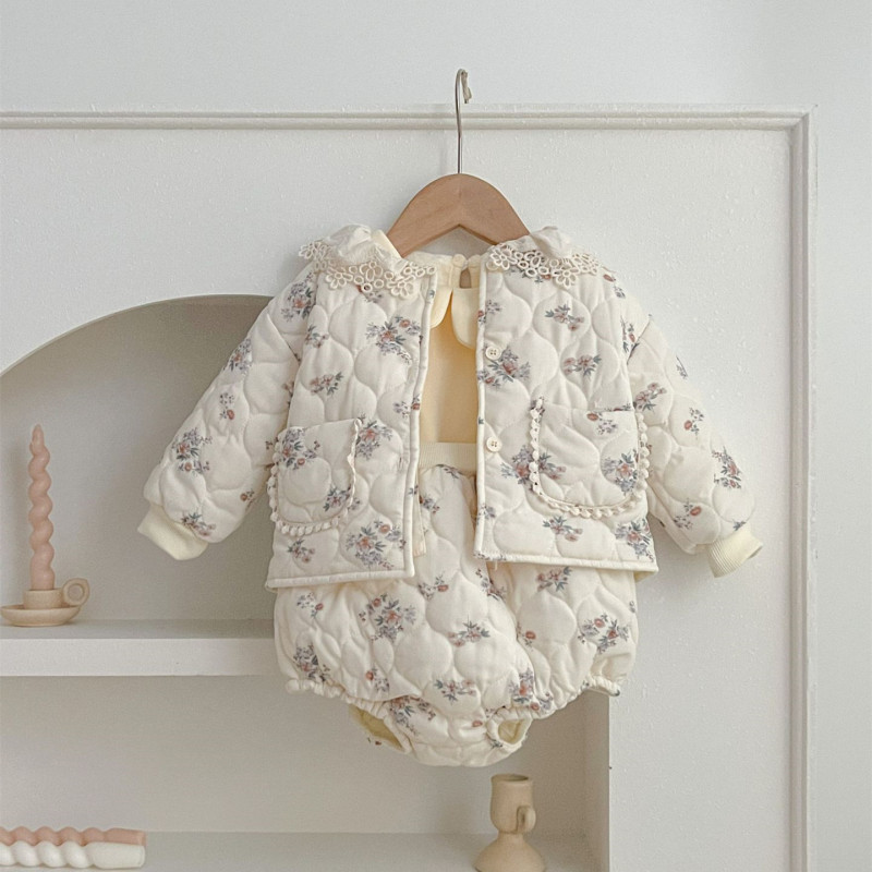 Color: beige apricot flower suit